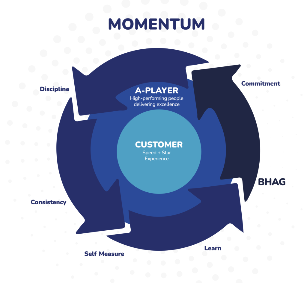 We advance through momentum. Momentum begins with ambitious goals, strengthened by disciplined follow-through, clear measurement, and continuous learning. We recognize that challenges and errors are part of progress; what matters is learning, adapting, and improving with each step.